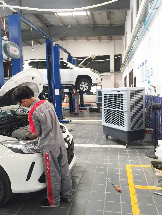夏日炎熱,室外溫度在35度以上,室內(nèi)溫度更是高達(dá)37度,4S店維修間密閉不通風(fēng),空氣悶熱異常,極易造成維修人員中暑,客戶要求降溫10度左右,可以隨時移動,還可以空氣流通,我們推薦使用雷豹冷風(fēng)機(jī)MFC16000,把雷豹冷風(fēng)機(jī)MFC16000放置在維修人員附近,移動方便快捷,免安裝,還可以通風(fēng)降溫,使維修間內(nèi)的空氣,清爽涼快,含氧量增高,提高了維修人員的工作的效率。